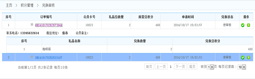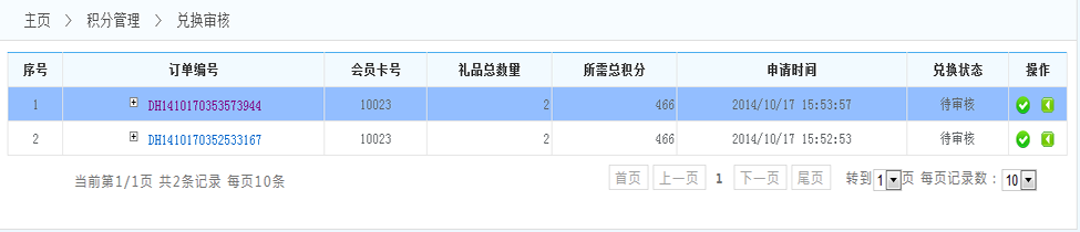 2.通過審核:點(diǎn)擊通過審核后,會員將得到禮品 將會扣減會員積分