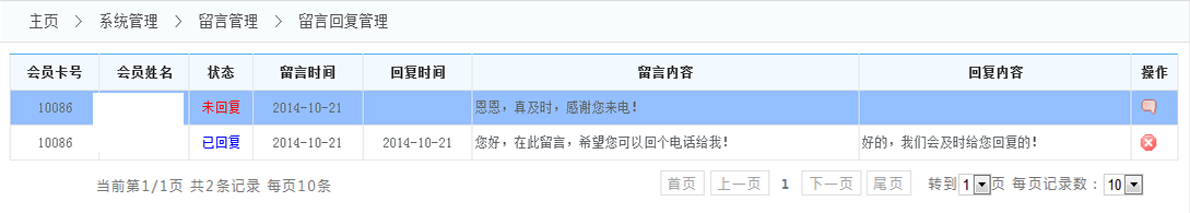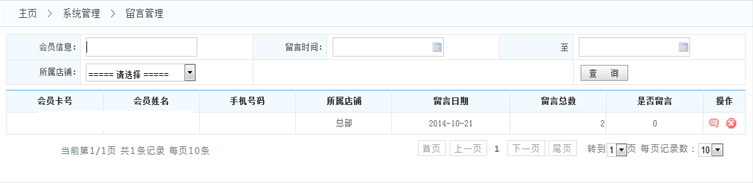 1.查詢留言:可以根據(jù)時(shí)間段或者店鋪或者會(huì)員 來查找留言
