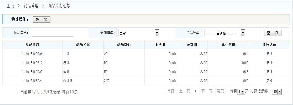 篩選:可以根據(jù)編碼或者簡碼或者名稱 快速找到某個(gè)商品 也可以根據(jù)店鋪或者商品分類查詢數(shù)據(jù)