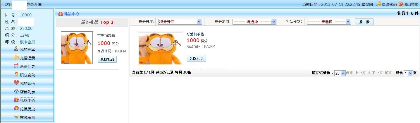 -> 五通一卡通云會(huì)員管理系統(tǒng)禮品中心