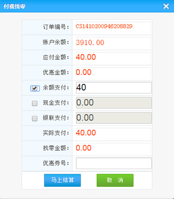 點(diǎn)擊結(jié)算按鈕,將彈出如下結(jié)算頁(yè)面
