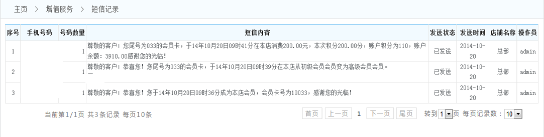 -> 五通一卡通云會(huì)員管理系統(tǒng)短信記錄